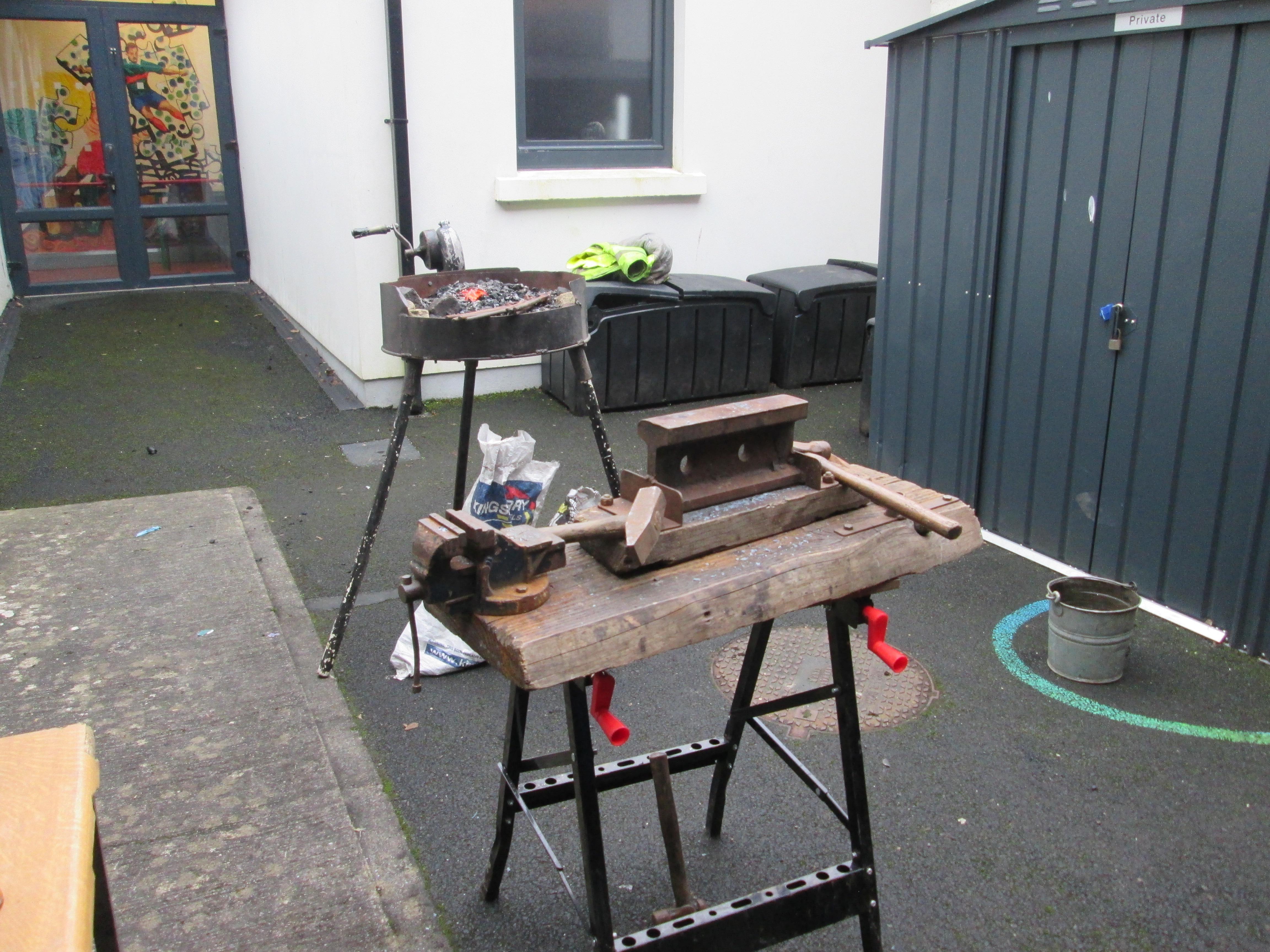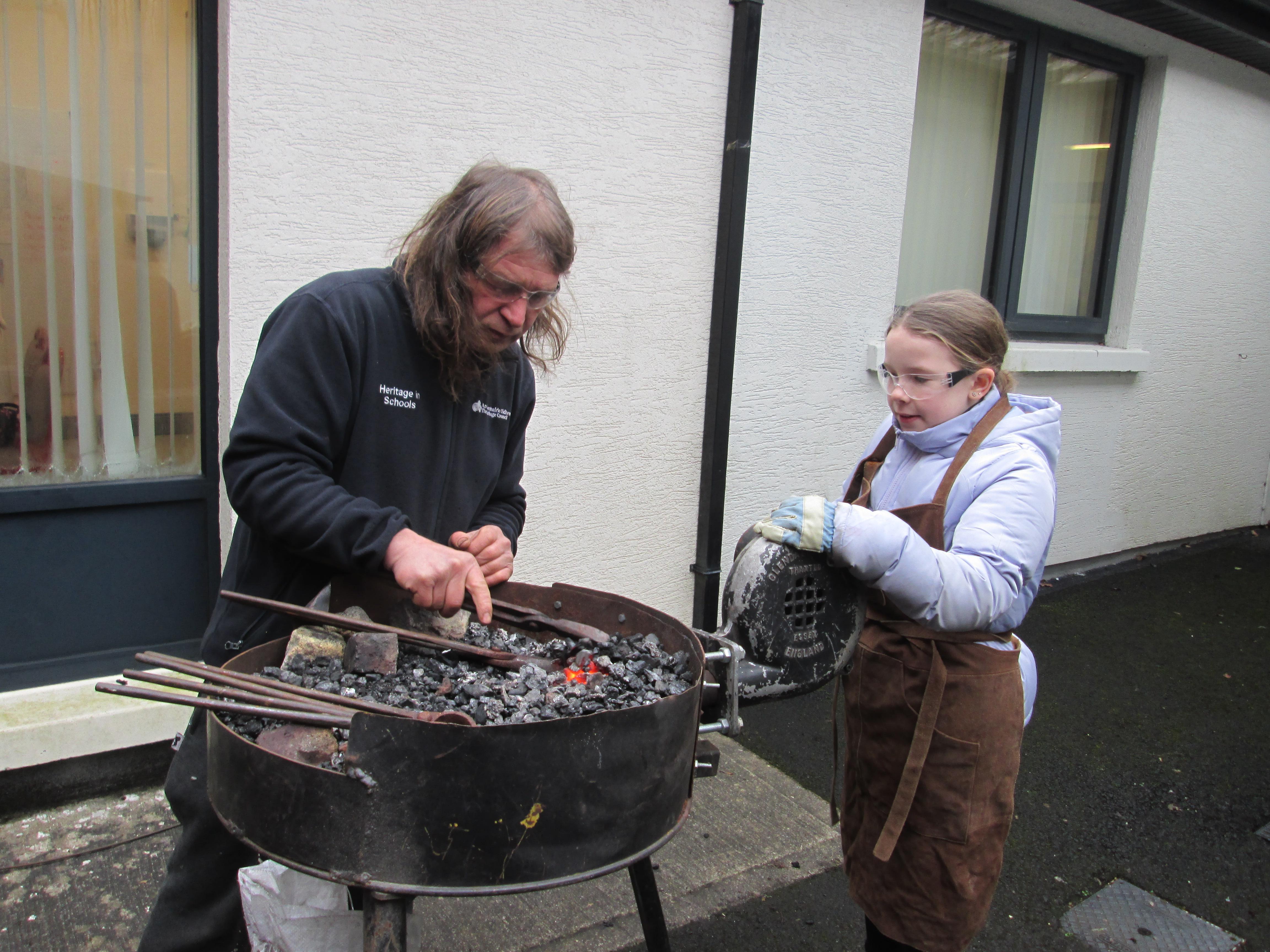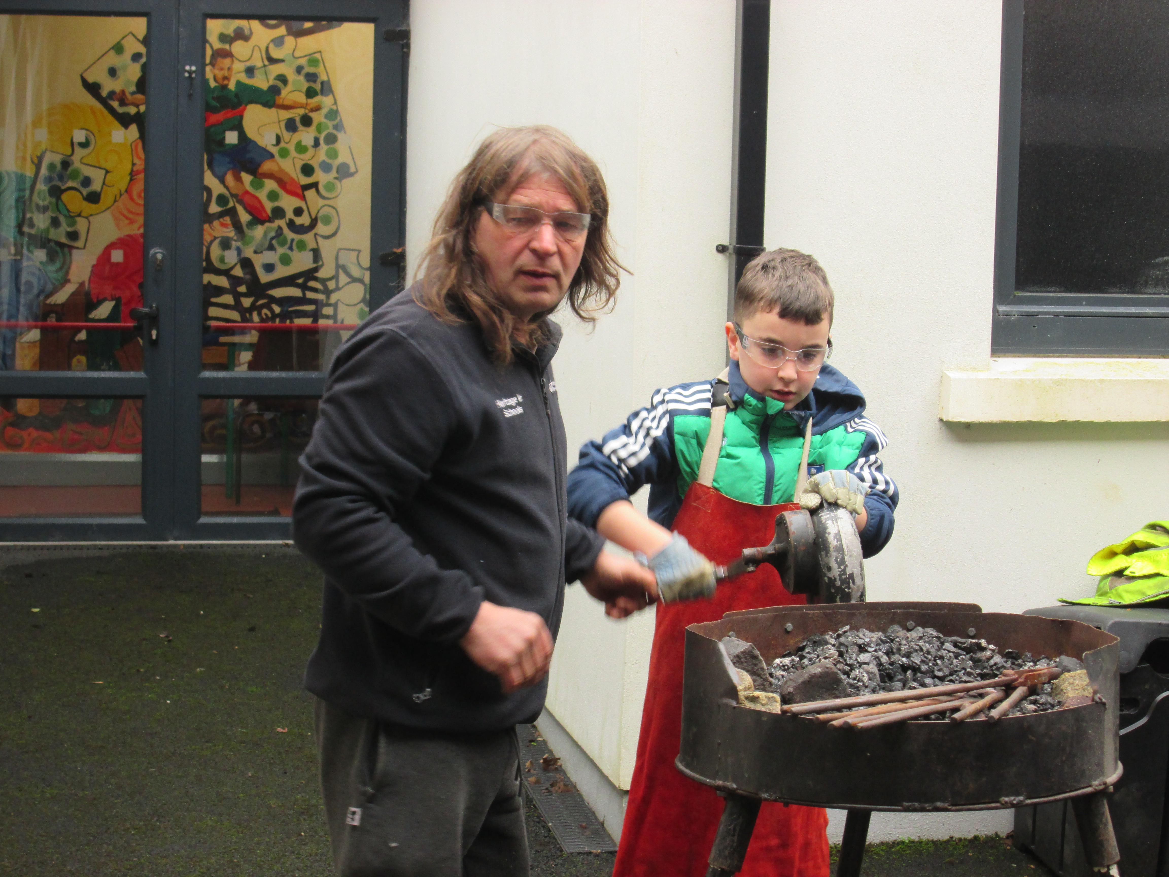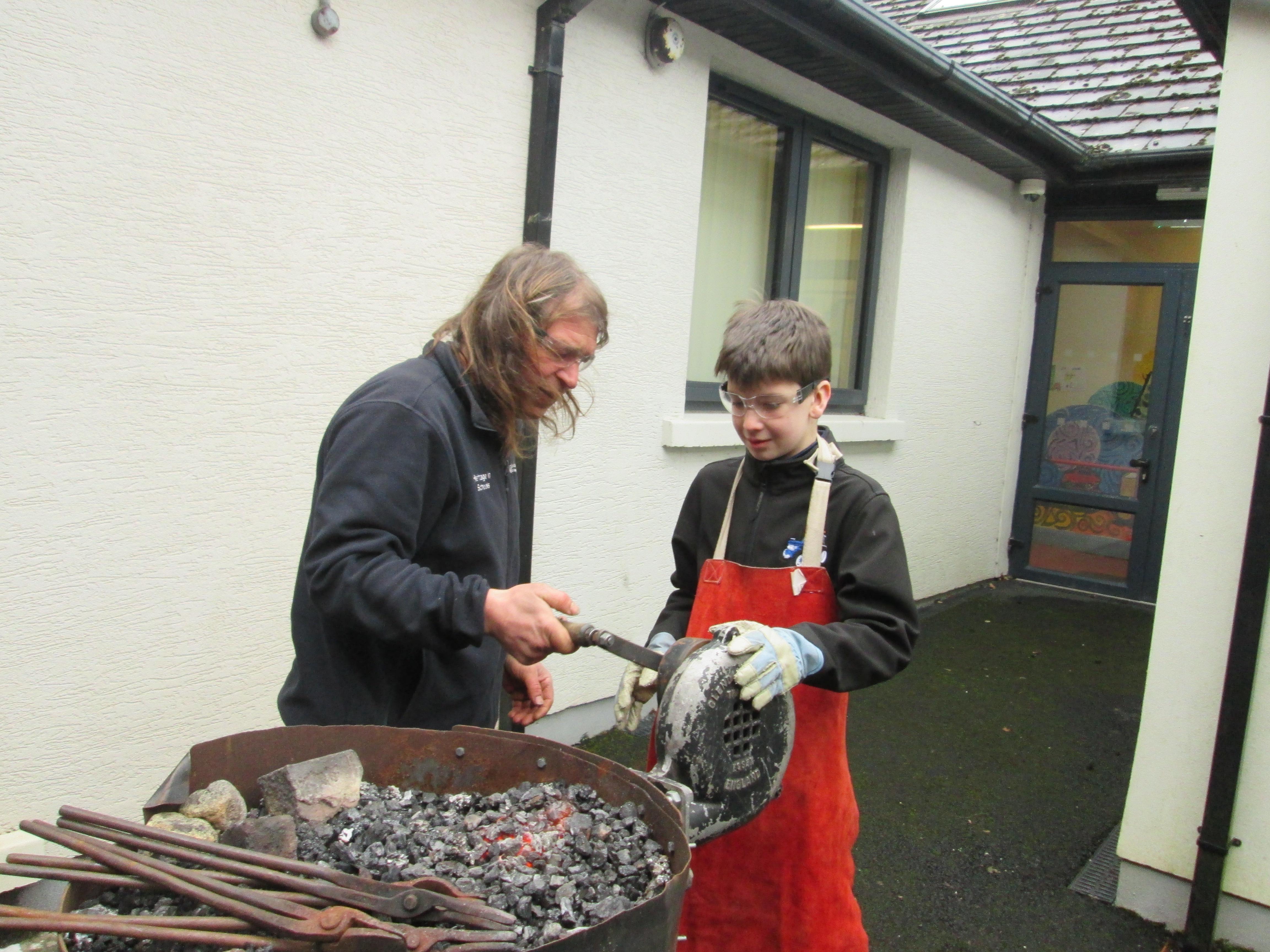 Richard Eaton,, a blacksmith  from the Heritage in Schools Programme showed us how to make a cross this morning!