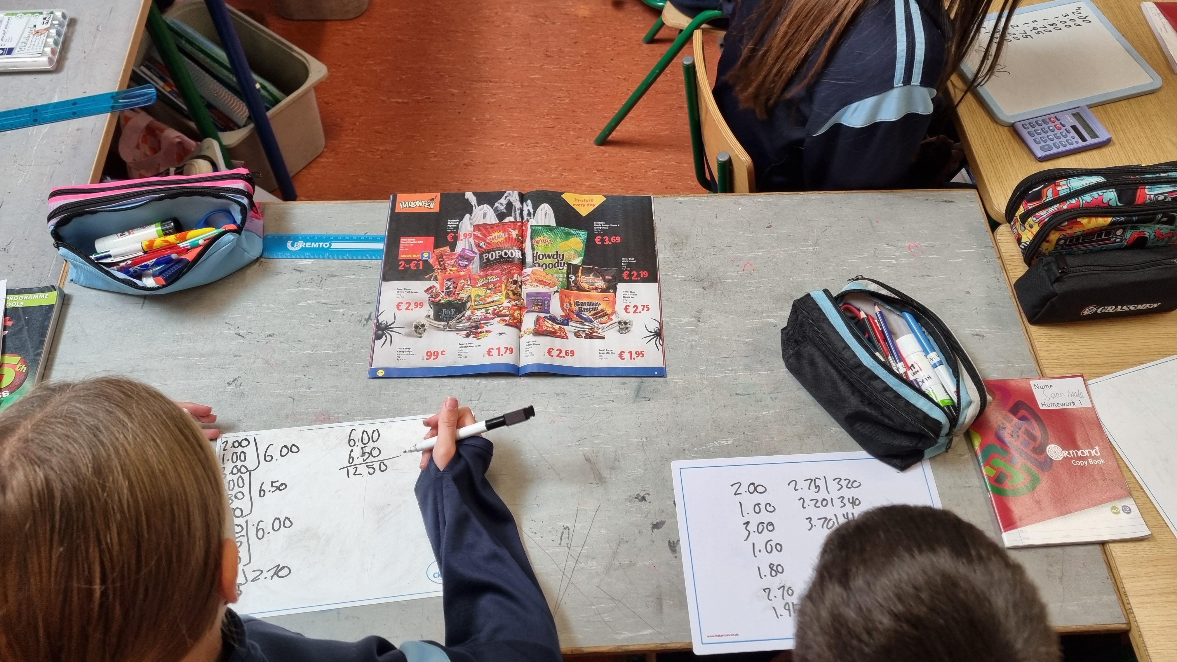 This week and last, 5th class have been learning about data and averages. This morning we worked out the average costs of Halloween sweets in the special buys of the Lidl brochure.